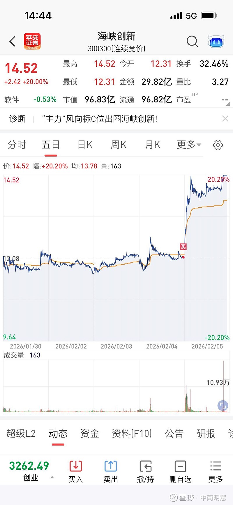 $海峡创新(SZ300300)$