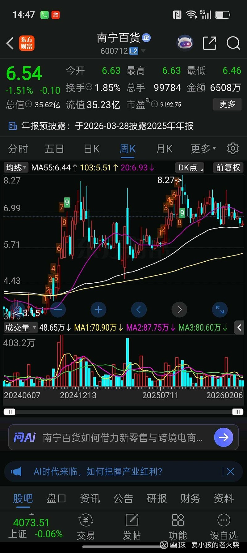 $南宁百货(SH600712)$