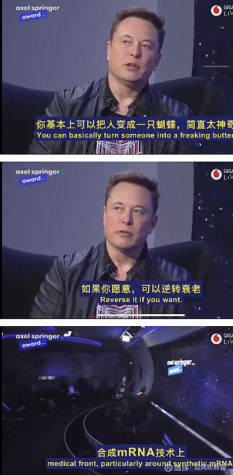 马斯克把DNA比作硬盘、mRNA比作软件代码、蛋白质比作应用程序,将生命视为可编程系统,认为mRNA能快速“编程”细胞生产所需蛋白,理论上可治多种疾病,尤其看好癌症治疗潜力。