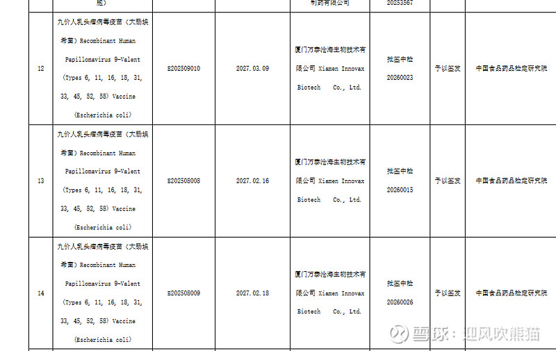 双价人乳头瘤病毒疫苗(毕赤酵母)3个批次,万泰感觉主要批九价了。羡慕九价3个批次