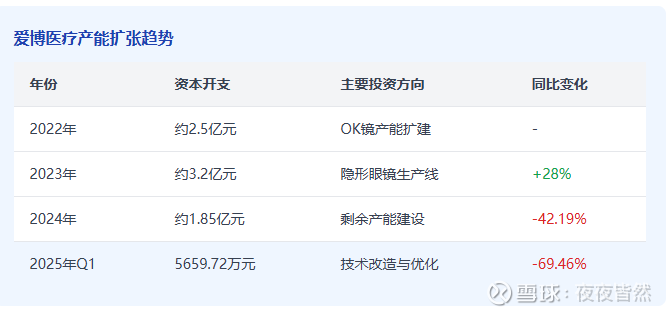 公司 2025 年 4 月完成定增募资 2.85 亿元,募投项目 “隐形眼镜及注塑模具加工产线建设” 刚启动,本期投入仅 44,934,541.81 元,尚未形成大额资本支出。
