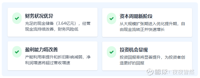 从资本周期角度看,公司已完成大规模资本投入,进入收获期。随着产能利用率提升、成本下降和新产品放量,未来2-3年将迎来业绩快速增长期。当前估值处于历史低位,安全边际充足,具备较高的投资价值。