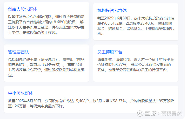 一致行动关系:通过博健和创(5.65%)、博健创智(3.02%)以及已解除一致行动关系的博健和创(原持股 5.76%)等员工持股平台,合计控制约 18.68% 的股权。值得注意的是,解江冰与毛立平、白莹夫妇的一致行动协议已于 2023 年 7 月到期解除,这对控制权产生了一定影响。