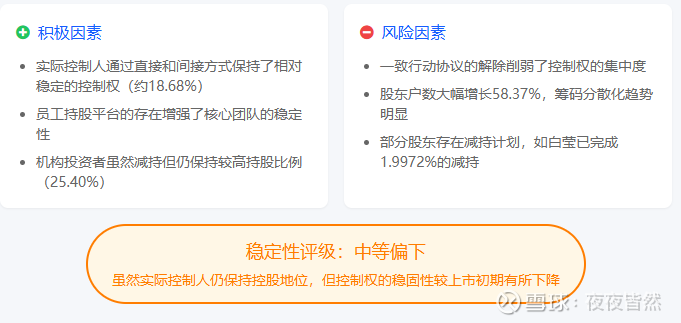控制权稳定性下降:一致行动协议解除后,控制权集中度有所降低