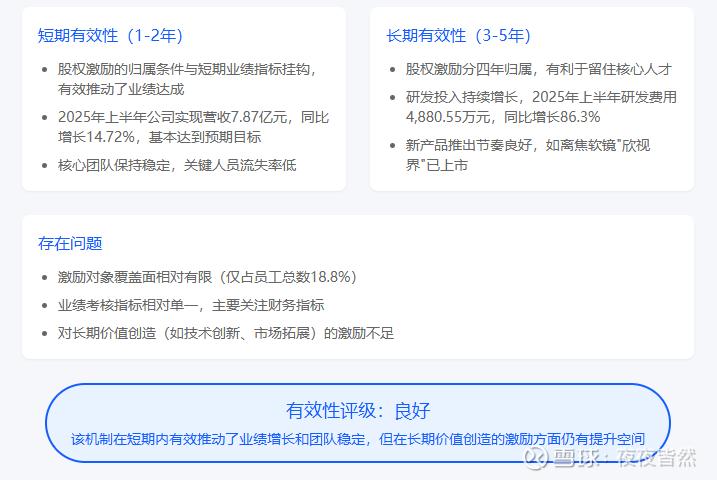 从短期和长期两个维度评估爱博医疗激励机制的有效性:
