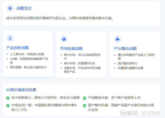 长期战略清晰:公司战略聚焦眼科医疗器械,发展路径明确,有利于长期价值创造