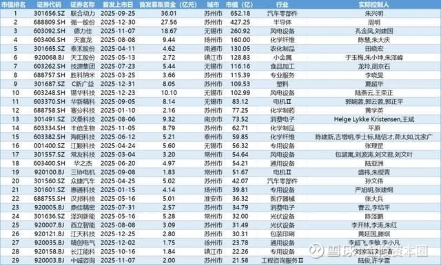 分区域看,2025年,江苏29家新股公司中,苏州12家,无锡5家,常州3家,扬州、镇江各2家,南京、南通、徐州、泰州、淮安各1家。