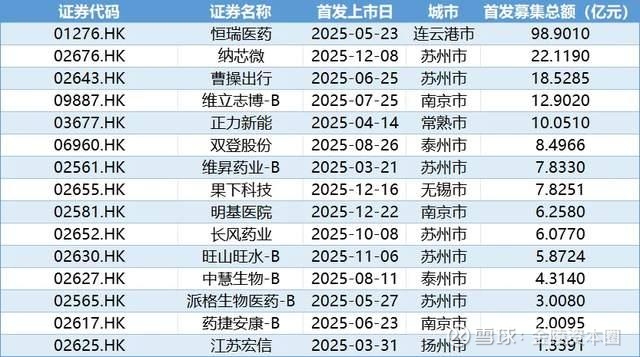 (2025年,江苏港股新股一览表,根据东财choice整理)