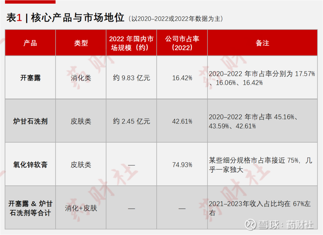 目前公司专注外用药的研发、生产和销售,产品覆盖消化类、皮肤类和五官类多个细分领域,既包括开塞露、甘油灌肠剂(glycerin enema,甘油灌肠剂)这样的消化用药,也包括炉甘石洗剂、氧化锌软膏等皮肤科常见制剂。