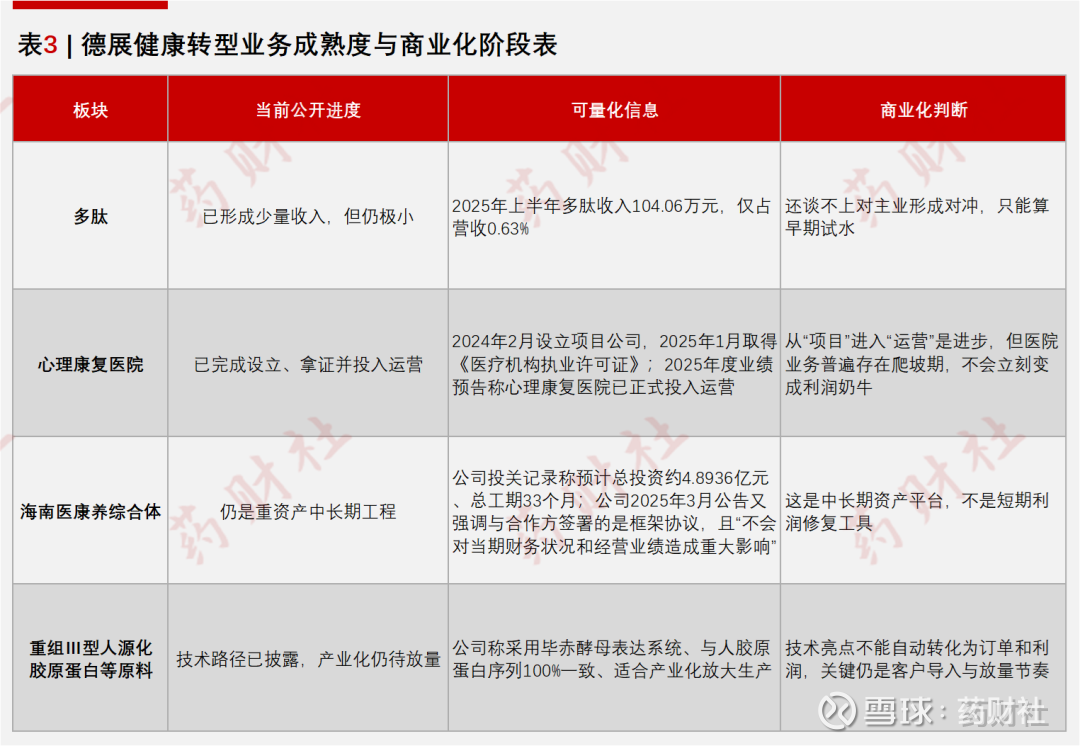 多肽板块半年营收仅为百万元规模,心理康复医院和医康养项目对利润贡献有限,却持续消耗研发、运营和建设成本,再叠加多项资产减值计提,最终在财务报表上体现为期间费用率攀升、“老业务下滑、新业务烧钱”的典型剪刀差。