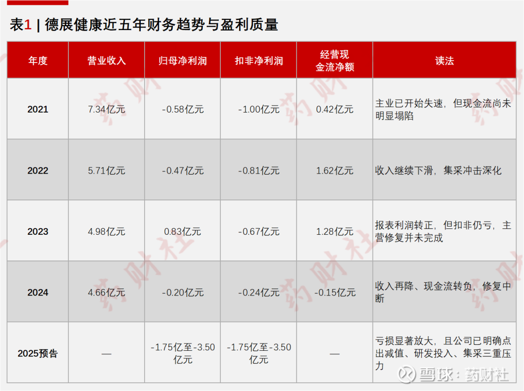 回溯近五年,德展健康仅在2023年实现约8331万元盈利,2021、2022、2024以及2025年预告全部为亏损,营收也从约4.98亿元下滑至4.66亿元并持续承压。
