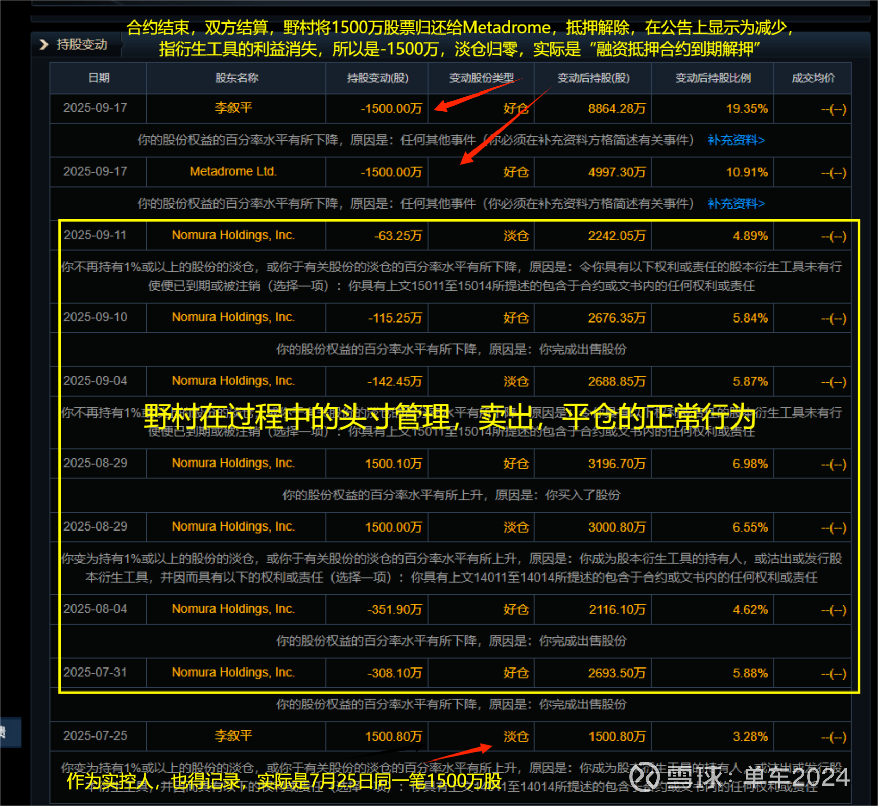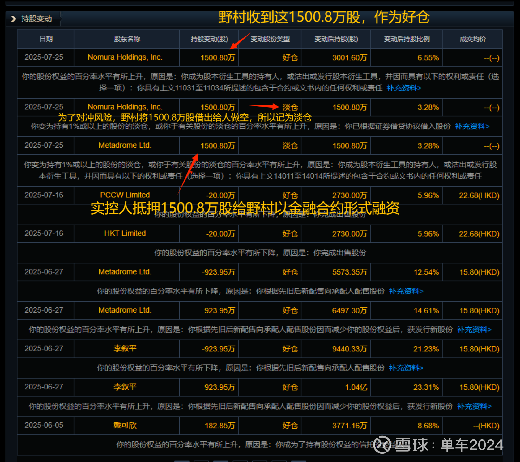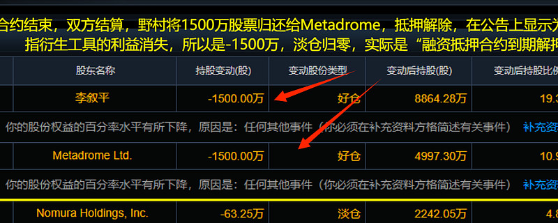 Metadrome Ltd. 增加 1500.8万 淡仓:这意味着Metadrome“欠”野村1500.8万股(因为抵押出去了)。