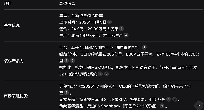 总的来说,奔驰电动CLA迈出了坚实且关键的一步,但它正驶入一个由本土品牌定义规则的新战场,最终的成败还需要更长时间的市场检验。