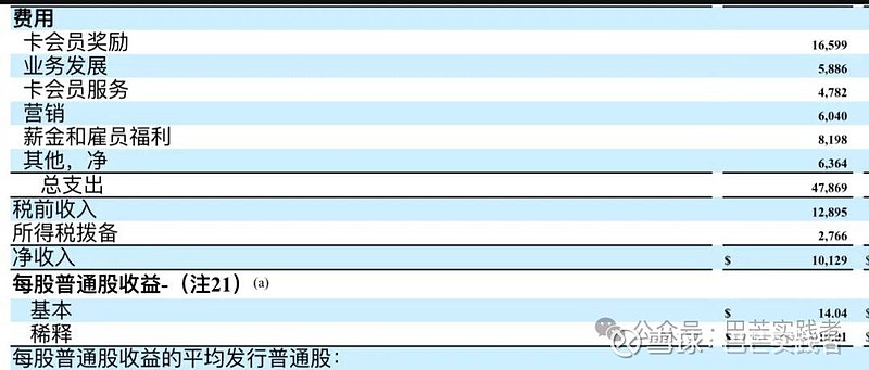 美国运通是一家全球综合支付公司,拥有卡发行,商户收单和卡网络业务,为广泛的客户提供产品和服务,简单的说美国运通主要收入包括4个部分,1、折扣收入、2、运通卡会员年费、3、服务费和其他收入,4、净利息收入。