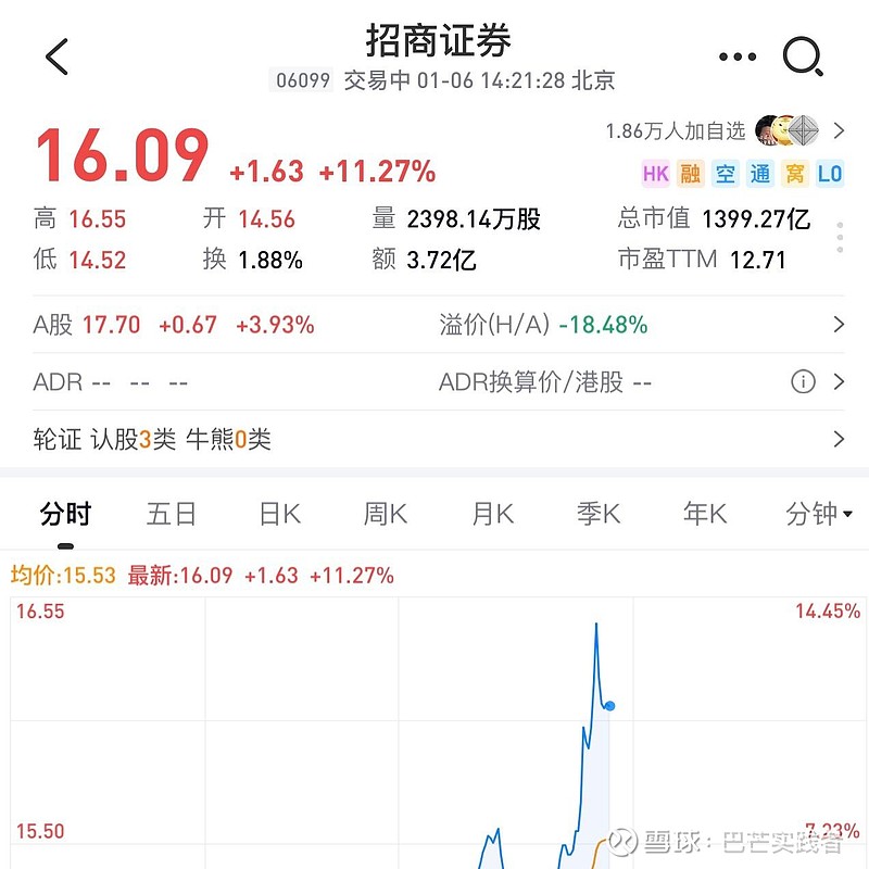我勒个去,太疯狂了,巴哥已经在招商证券h涨幅11%出掉了,摸鱼仓H股1万股,合计盈利15000元左右,大致就是这样,兄弟们,2026年巴哥第一摸成功了,西服挺起了,我早说过,中年男人没有气场怎么行呢。$招商银行(SH600036)$ $招商证券(SH600999)$ $中煤能源(SH601898)$