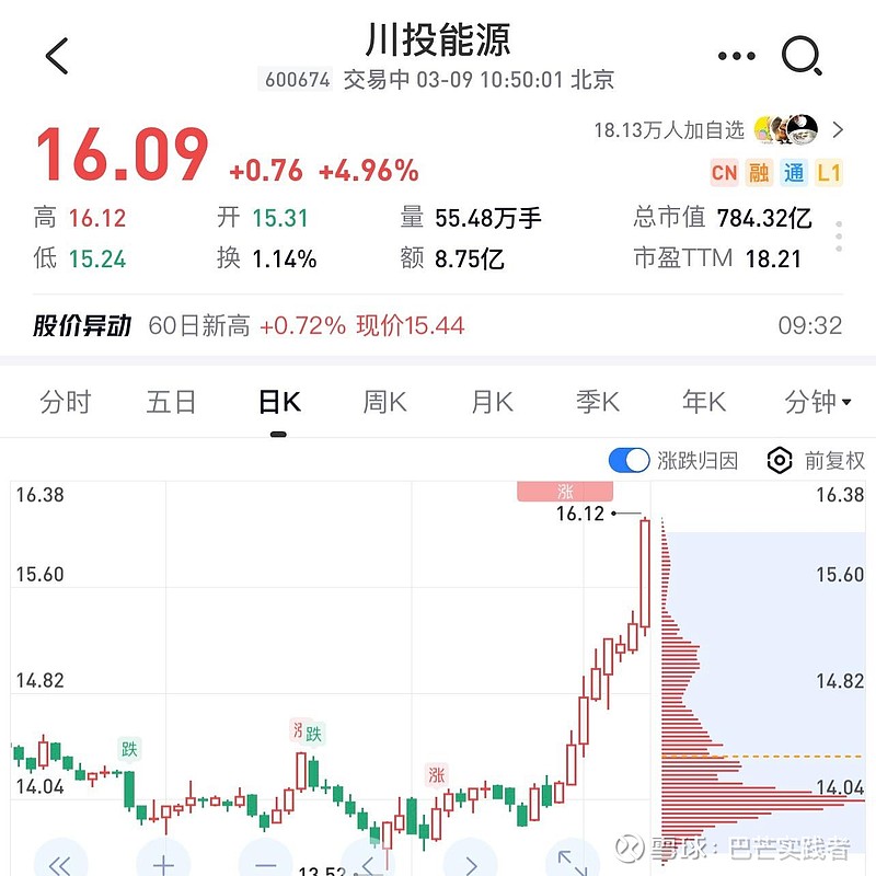 嗯,不错,川投能源继续上涨,巴哥正在赚的盆满钵满了,去年股价天天跌,巴哥阅读他们的年报之后快速买入,目前已经盈利15%了,现在我又摸鱼了老凤祥,未来大概率也能赚到钱,为什么巴哥摸鱼总能成功,有两大关键变量,1、买入的都是优质企业,从不投机,2、都是在别人恐惧的时候摸鱼,意味着我买的东西很便宜。