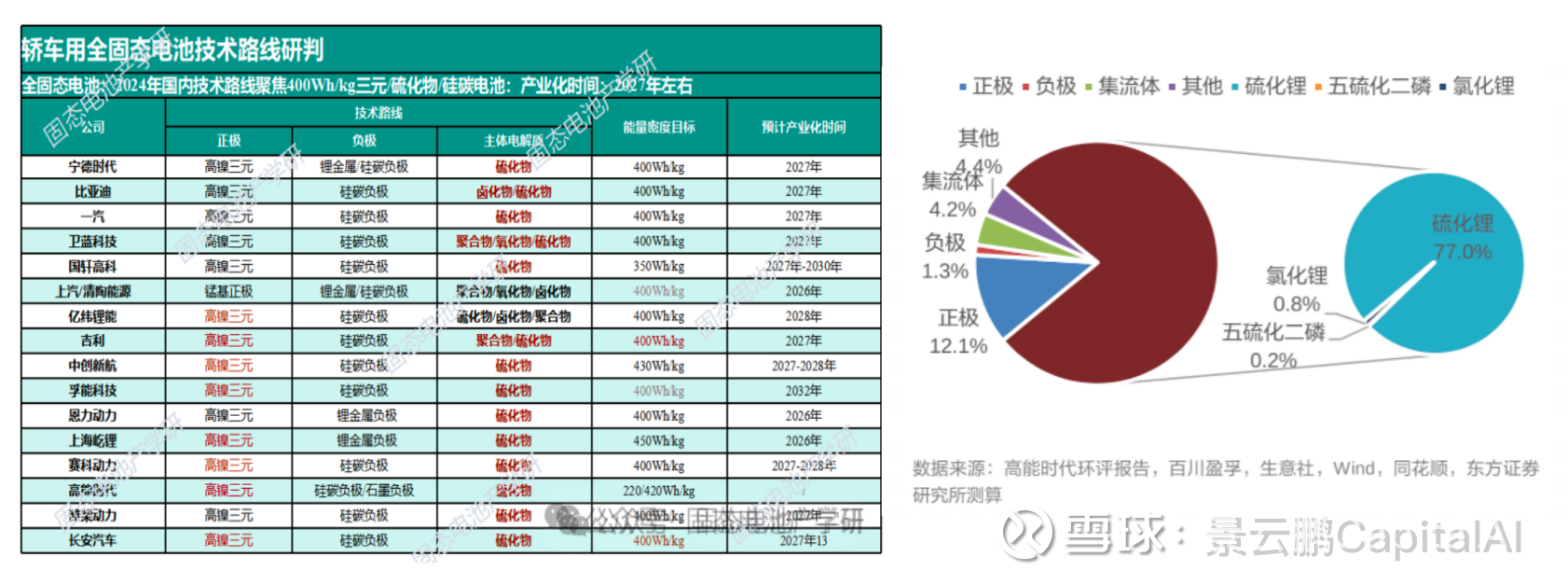 天赐材料:液相法。依托其电解液主业强大的客户渠道,快速向下游固态电池厂商送样。目标是通过规模化与工艺优化,将成本降至50万元/吨以下。
