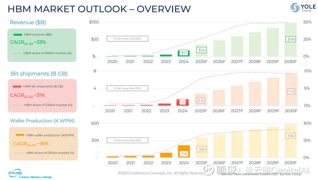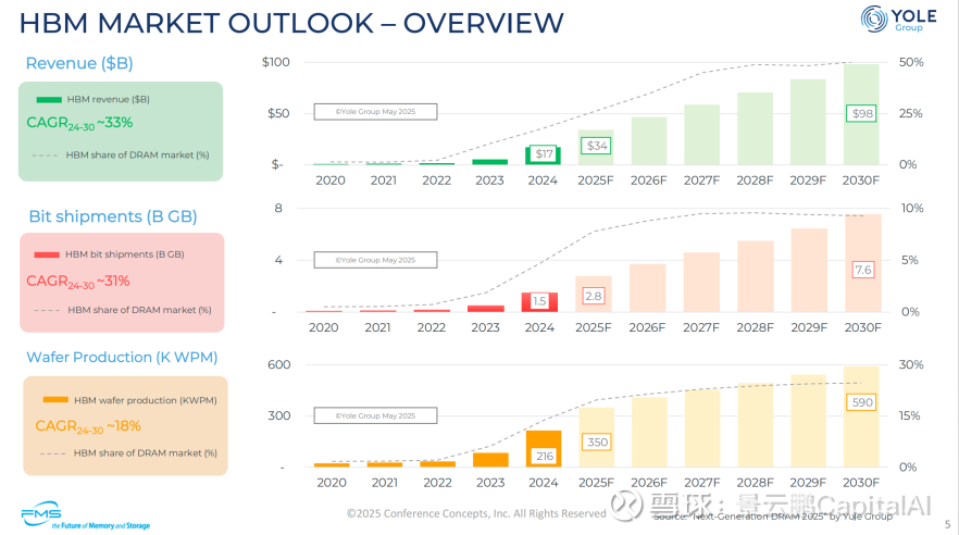 HBM 占 DRAM 市场晶圆产量份额:稳步提升