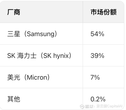 市场垄断:SK 海力士在 2025 年继续把持着 60% 以上的 HBM 市场份额,迫使 OpenAI 甚至采取“跪求产能”的姿态与之签署战略意向书(LOI)。