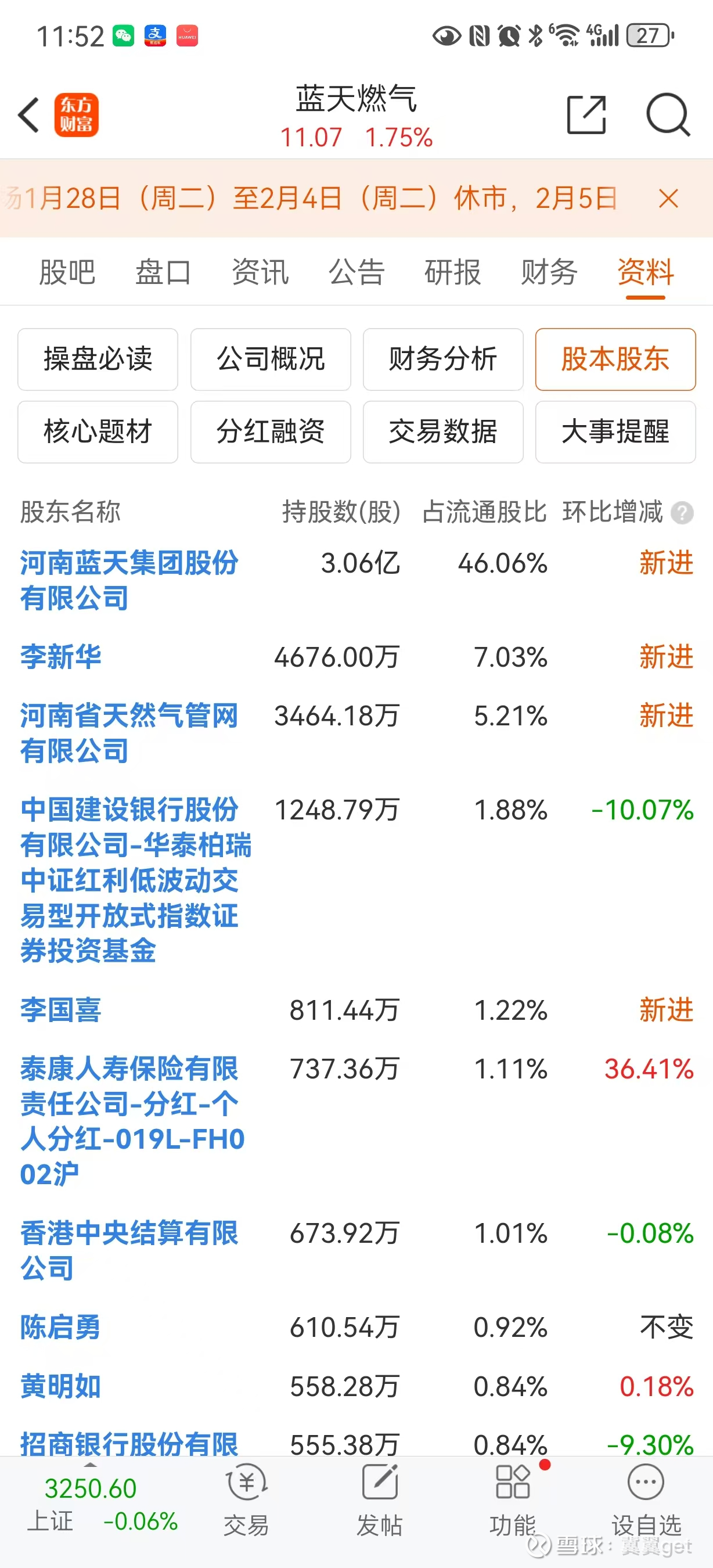 7.03%+46.06%×87.625%×67%=34% 毛估估,李新华应该是决策者里面最关键的一位了,她本人又拥有绝对的话语权,其次应该是很难升天然气管网了。也算是补充了公司没有zf背景的短板了,能源是涉及民生的重要领域。是基本盘。是不能乱的。这种领域有zf背景会是一个显著的优势。
