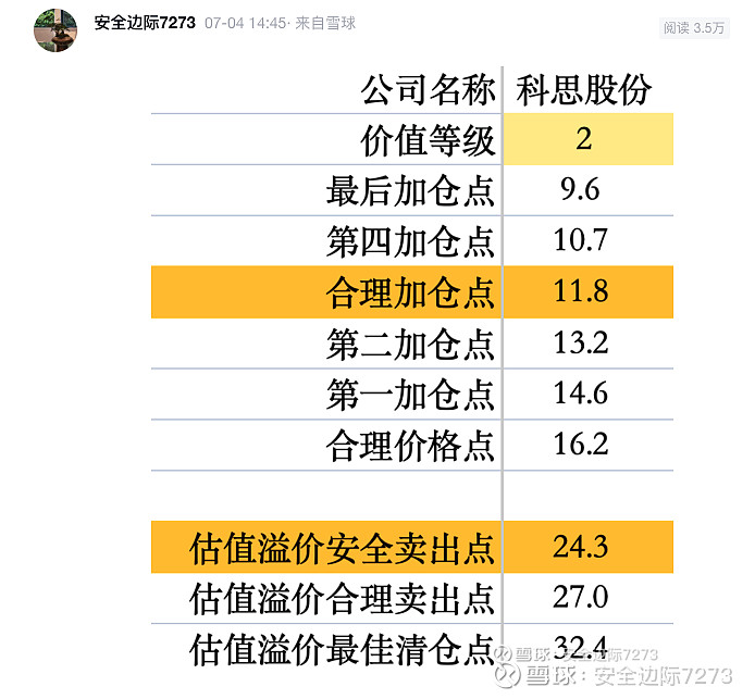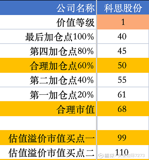 这样看来 7 月 4 号(第一张图)覆盖的时候给出估值有点高了,这里调低一些参数。估值模型给出的最新估值如下(第二张图):科思股份的合理市值在 68 亿元左右,估值溢价卖出市值在 99 亿市值左右。以上估值仅做参考,因为我也说不短期内市场会如何思考这份财报?如果市场的反应是“利空出尽便是利好”,股价不排除不会大幅下跌。但个人还是会按照估值模型谨慎投资。(估值各有不同,不提供投资建议)