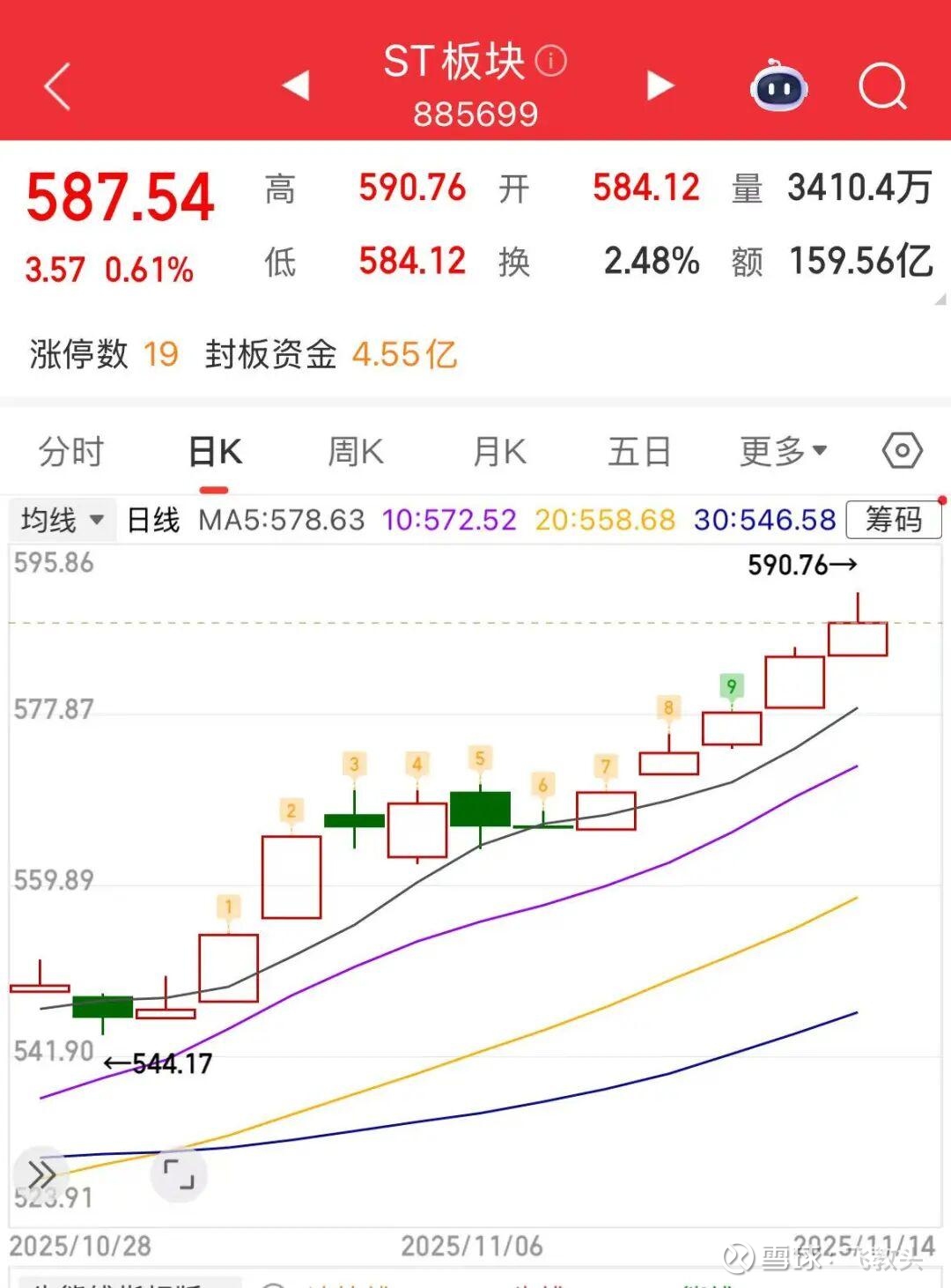 11月前二周,ST板块上涨了33点,从10月底的554点,上涨到587点。