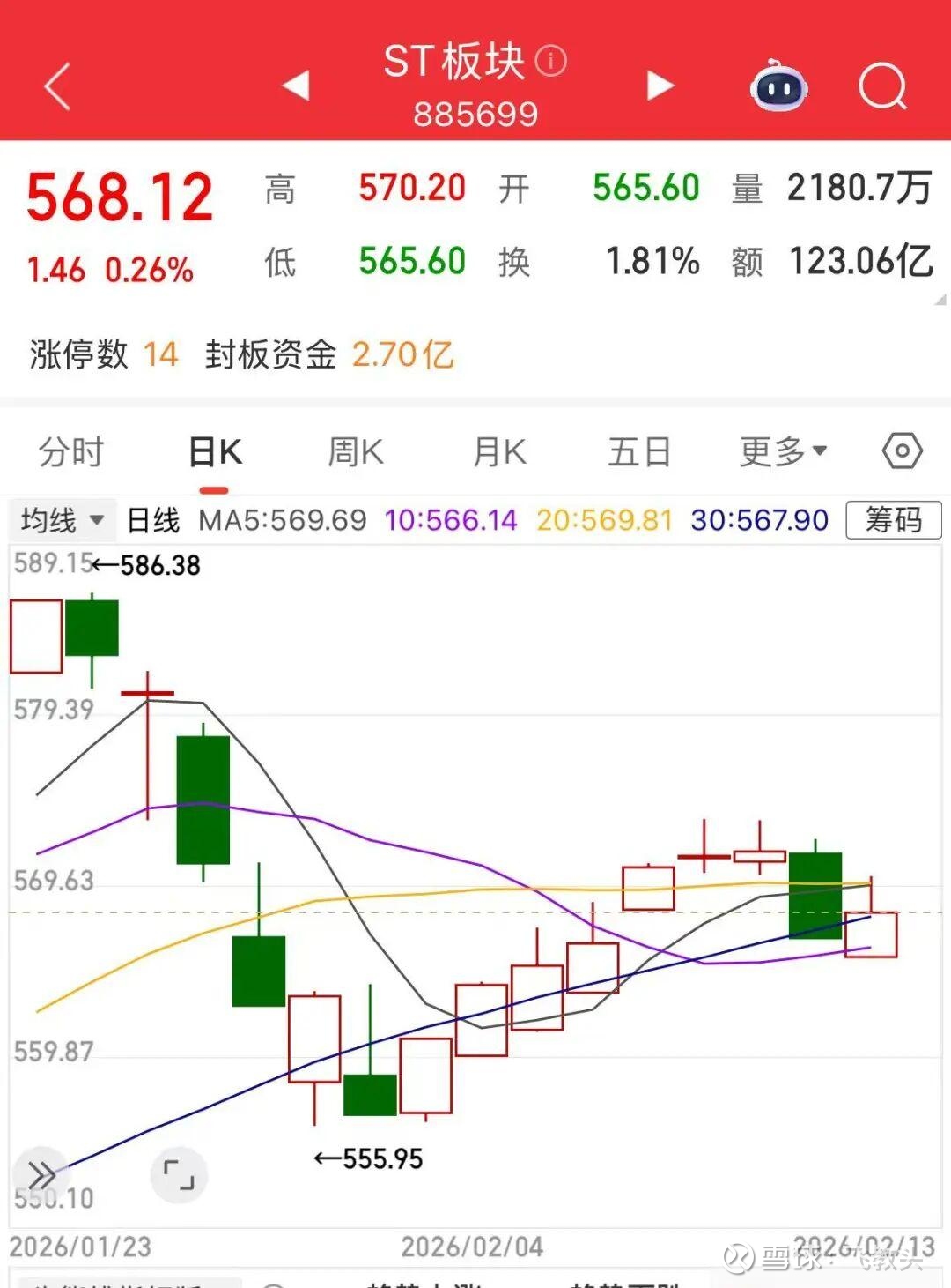 从26年1月30日的567点,到目前的568点,2月前2周上涨了1点。