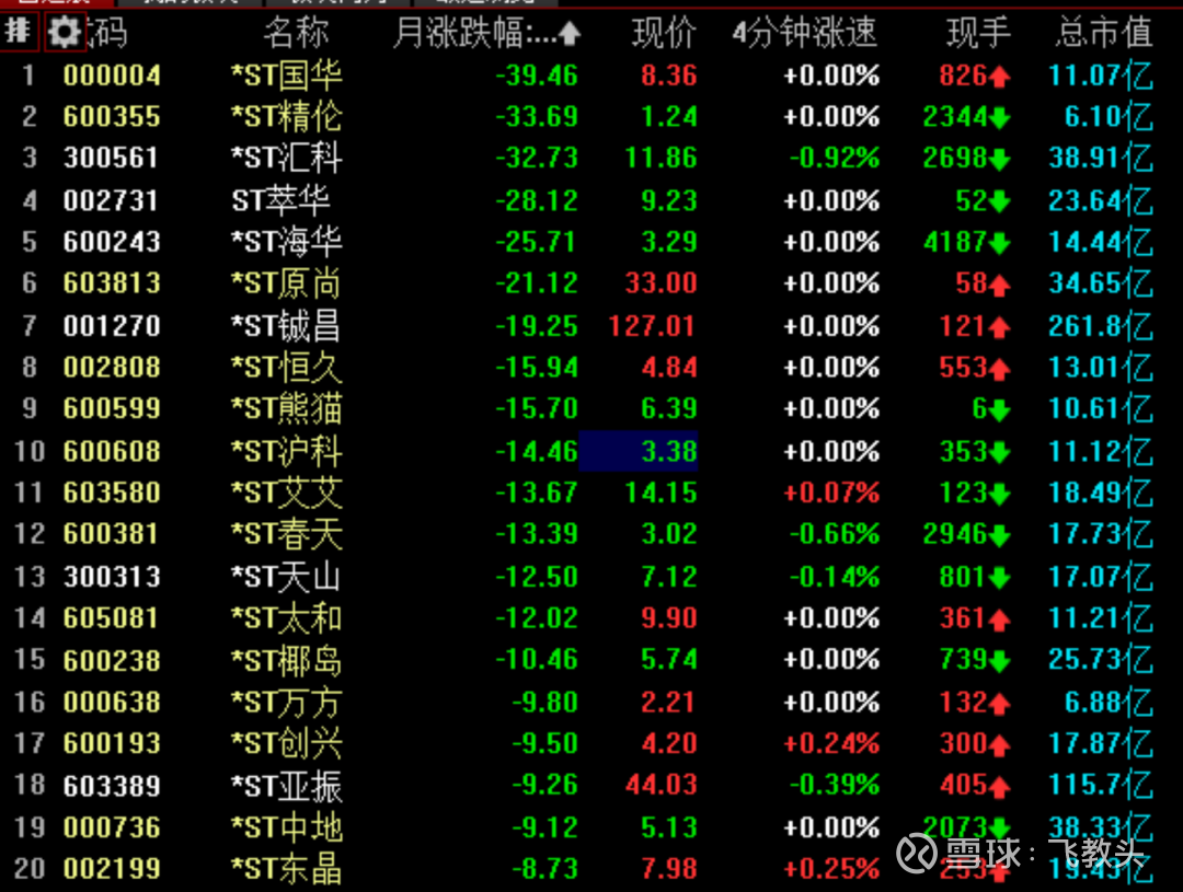 还是先看一下2月前2周的ST涨幅榜。