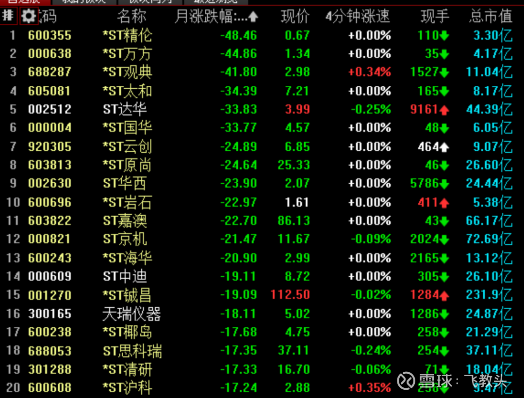每个月的ST板块盘点时间到了,今天是2026年的3月31号,2026年3月最后一天。