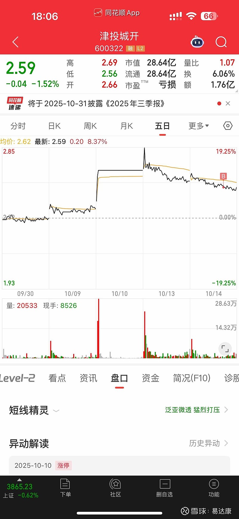 屠龙刀干了津投,符合模式,但是今天属于绿灯,所以只买了一成仓位。大哥昨天被套在山顶7个点,今天再次下跌1.5个点,两天差不多快送了10个点,明天自救,如果不救,破了2.56最低价下方2个点我会直接走掉$津投城开(SH600322)$