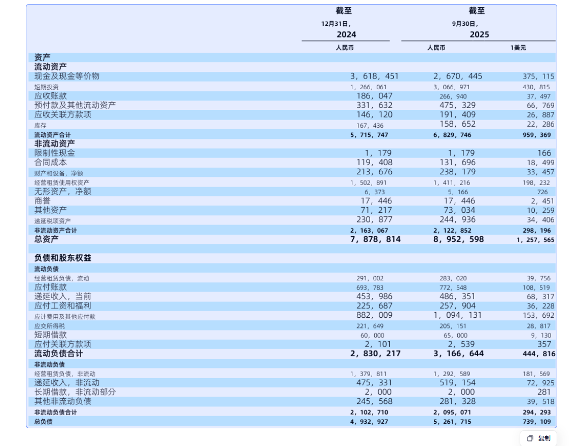 • 2025年第三季度的净收入同比增长38.4%,达到26.28亿元人民币(3.69亿美元)。