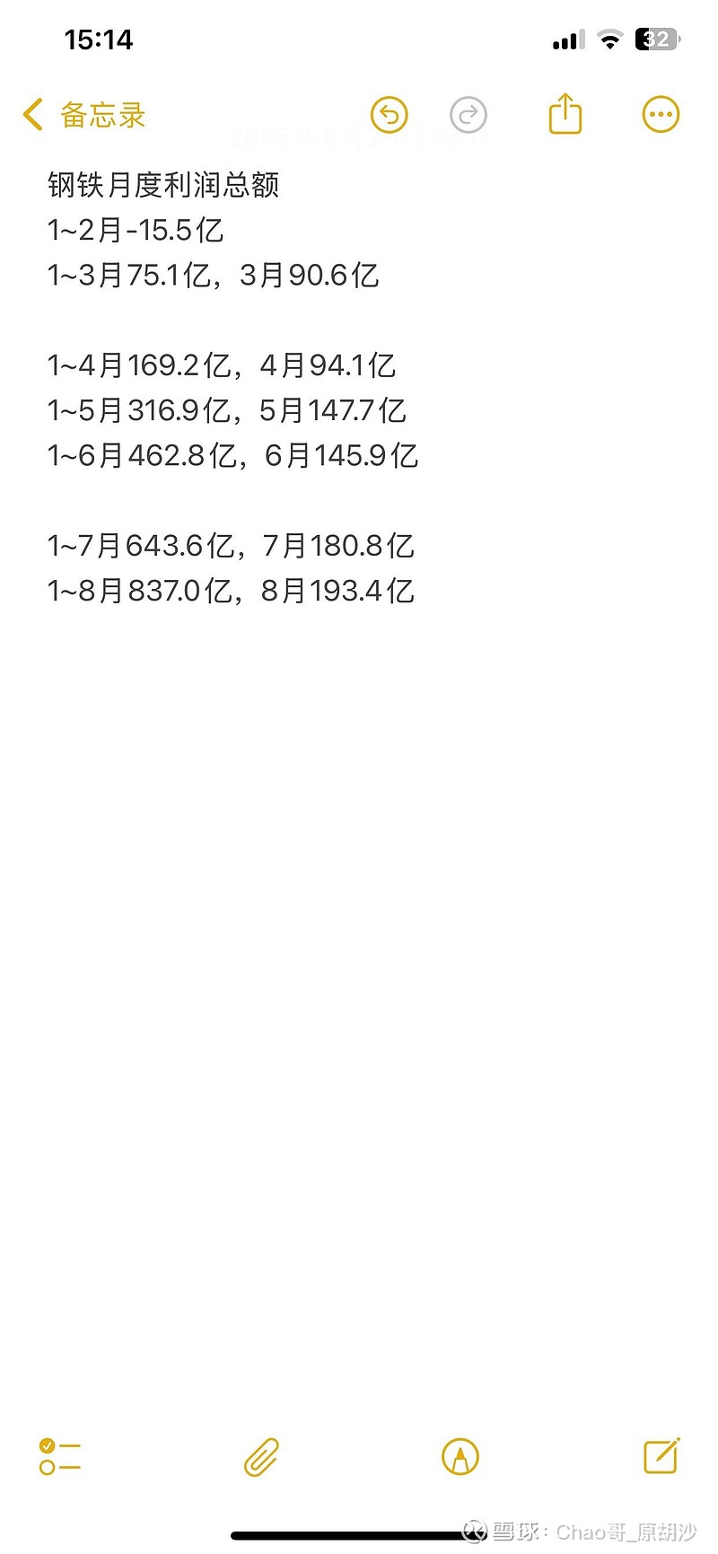 有点反直觉,冶金焦7月中开始第一轮到8月20号一共7轮提涨,滞后三周,8月应该已经开始侵蚀到钢企的利润了,利润总额竟然新高。
