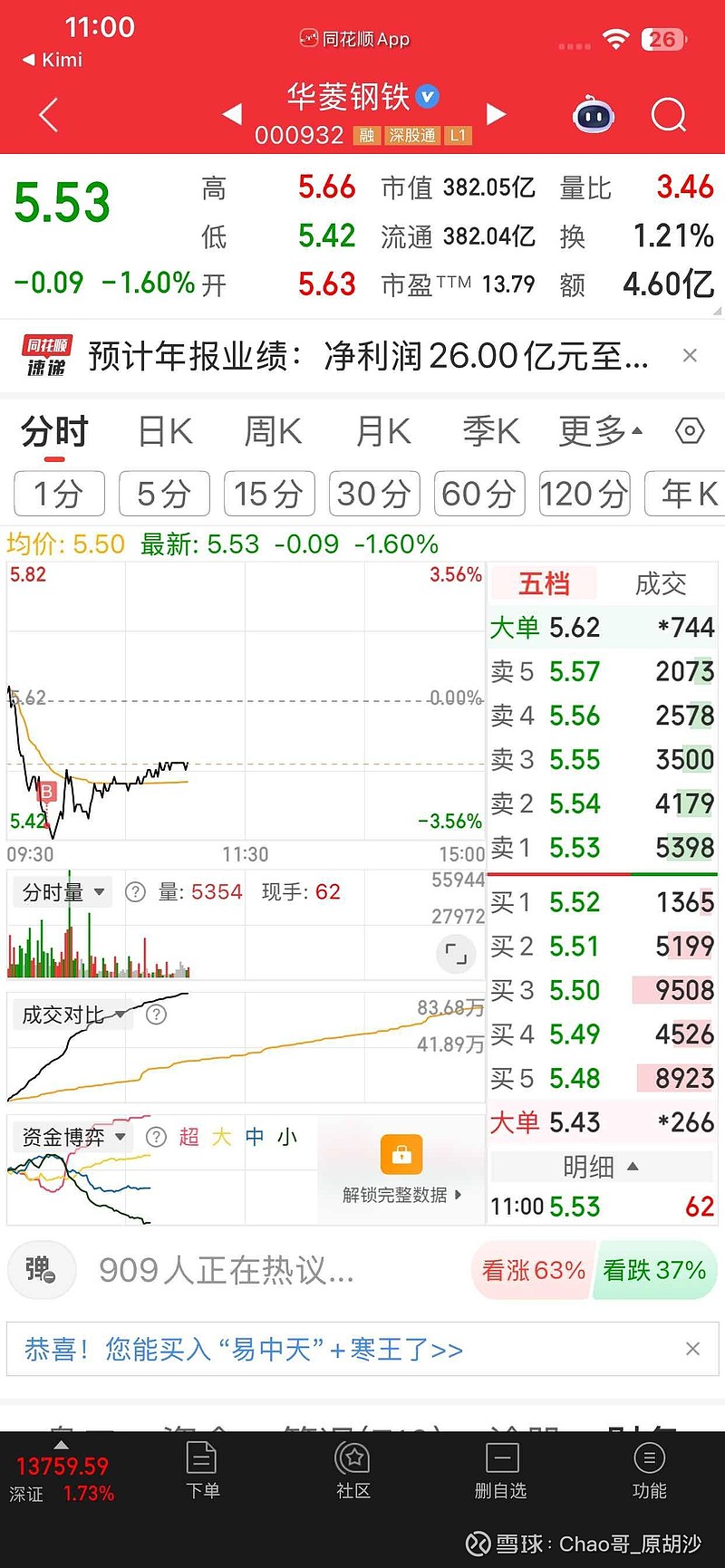调了一笔过来,后面继续跌会继续调,首钢市值=华菱是再平衡的节点
