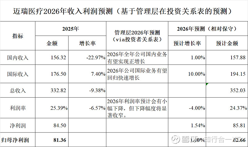 管理层在投资者关系表中对各类业务做的预测,计算出2026年预计收入利润,预计2026年整体净利润增长1%左右
