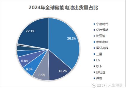 二是储能电池,2024 年全球出货量占比 13.2%,仅次于宁德时代,