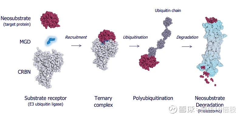 核心功能:通过小分子化合物诱导E3泛素连接酶与目标蛋白(新底物,Neosubstrate)形成稳定复合物,标记目标蛋白并引导其被蛋白酶体降解。