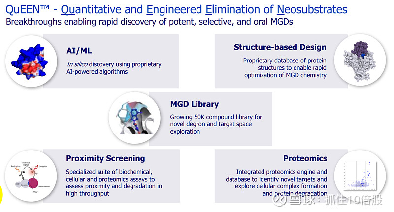 Monte Rosa Therapeutics的核心技术平台QuEEN(Quantitative and Engineered Elimination of Neosubstrates,定量和工程化消除新底物)是该公司开发分子胶降解剂(MGD)的核心引擎,专注于靶向传统“不可成药”的疾病相关蛋白。以下从技术原理、核心模块、工作流程、优势及实际应用等方面详细解析: