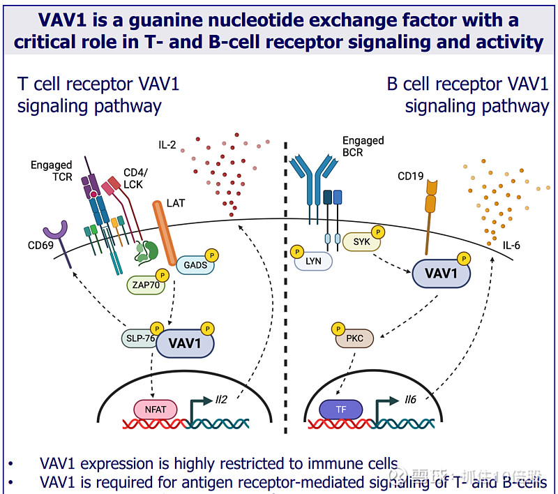 T细胞介导炎症:VAV1缺失导致T细胞活化缺陷(CD69表达↓、IL-2分泌↓),在类风湿性关节炎(RA)、炎症性肠病(IBD)模型中抑制炎症反应。