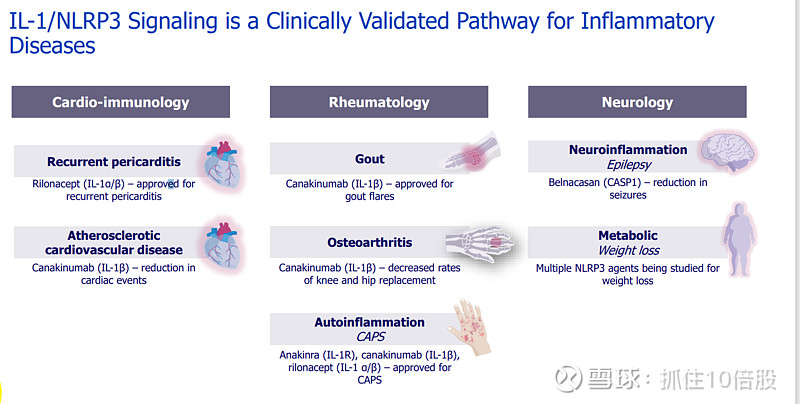 临床机遇:由白细胞介素 - 1(IL - 1)和 NLRP3 炎性小体驱动的疾病,包括痛风、心包炎及其他心血管疾病、神经退行性疾病和肥胖症。