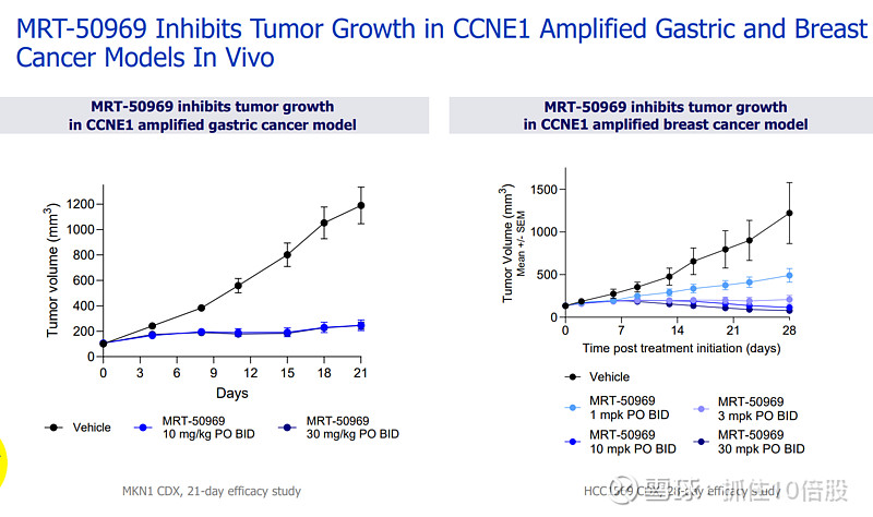 MRT-50969 在体内对 CCNE1 增强型胃癌和乳腺癌模型中的肿瘤生长具有抑制作用。