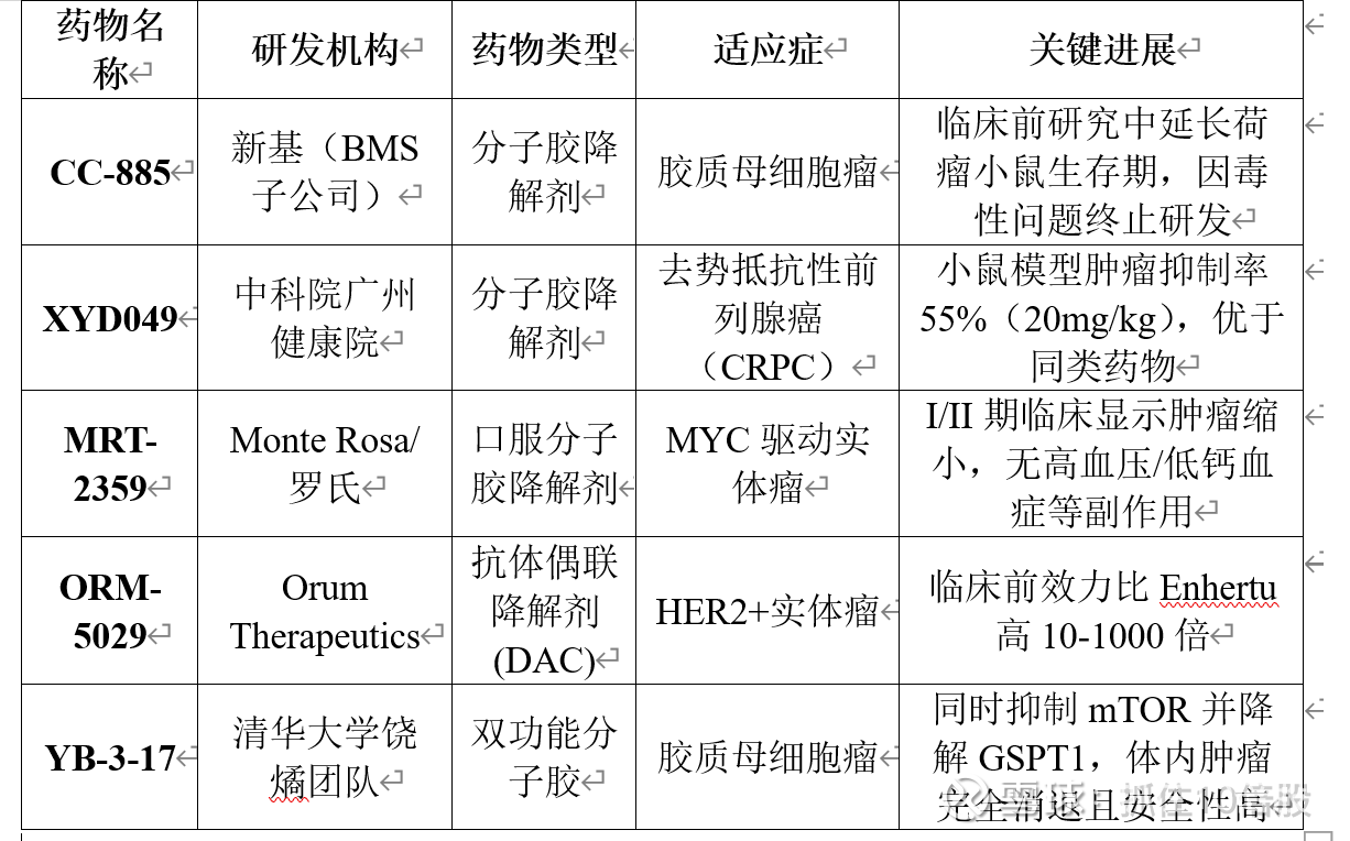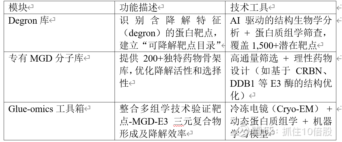 聚焦分子胶降解剂(MGD),通过重编程E3泛素连接酶选择性降解致病蛋白,解决传统小分子抑制剂无法靶向的蛋白靶点(约占人类蛋白组的80%)