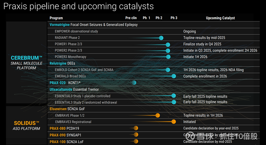 Praxis Precision Medicines(简称Praxis)是一家专注于中枢神经系统疾病的临床阶段生物制药公司,尤其在与神经元兴奋性失衡相关的癫痫治疗领域取得了显著进展。该公司通过将基因洞察转化为创新疗法,建立了多元化的研发管线。