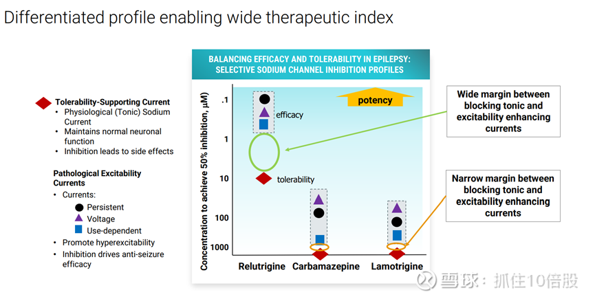 Relutrigine相对于卡马西平和拉莫三嗪等传统抗癫痫药具有更宽的治疗指数。