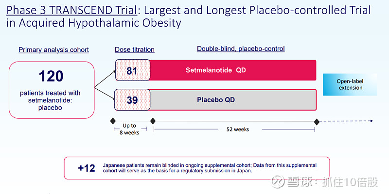 TRANSCEND 3期临床试验是获得性下丘脑肥胖领域规模最大、时间最长的安慰剂对照试验。