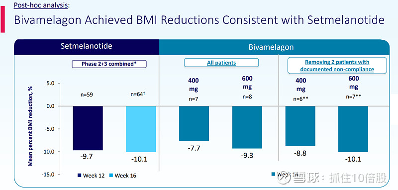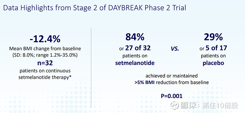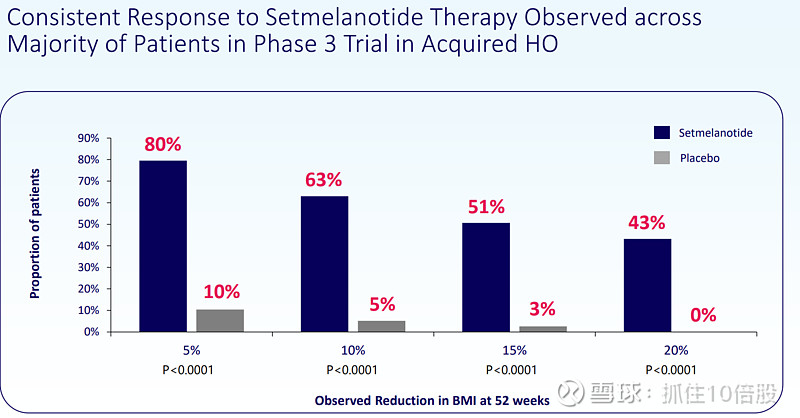 • 80%接受Setmelanotide治疗的患者在52周时实现了BMI降低5%或更多。