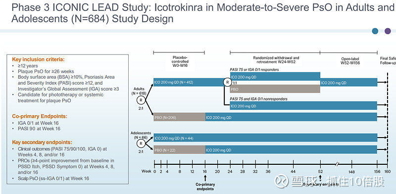 3期临床ICONIC LEAD研究:Icotrokinra治疗成人及青少年中重度银屑病。