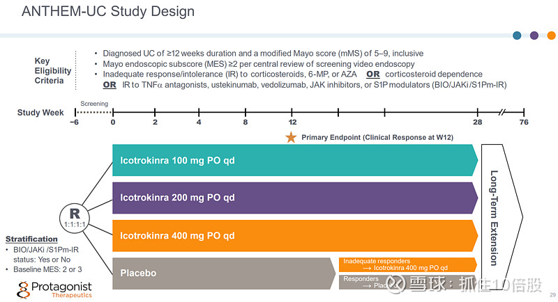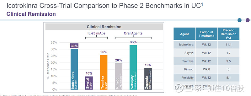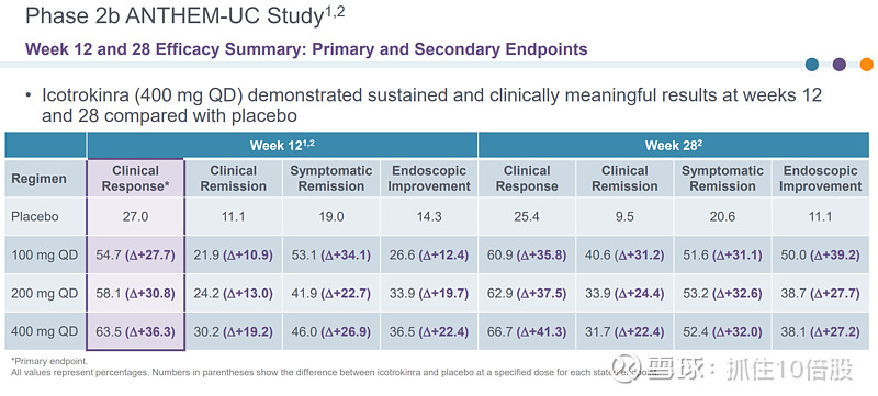 2b 期 ANTHEM-UC 研究(针对中重度活动性溃疡性结肠炎患者):Icotrokinra在所有剂量组中均达到了临床缓解的主要指标 。