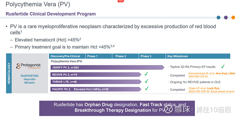 Rusfertide已获得针对真性红细胞增多症的孤儿药资格、快速通道资格以及突破性疗法认定。
