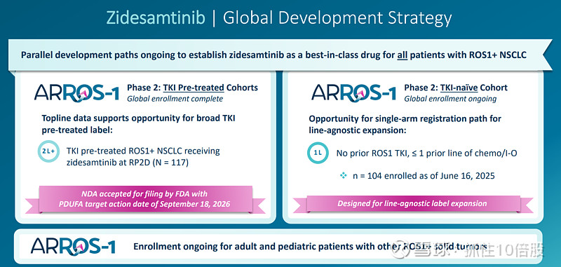 ARROS-1(2期临床): 2L TKI经治ROS1+的NSCLC患者。目前已经提交NDA申请,预计26年获批。