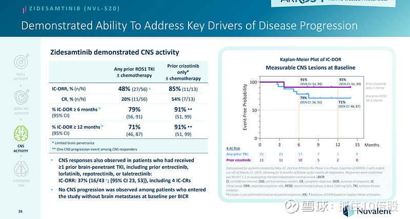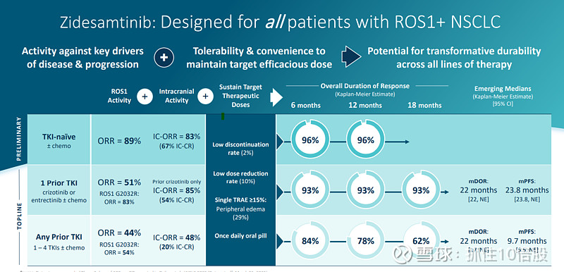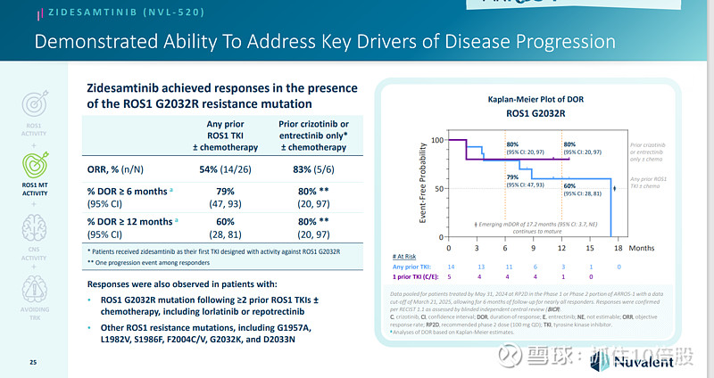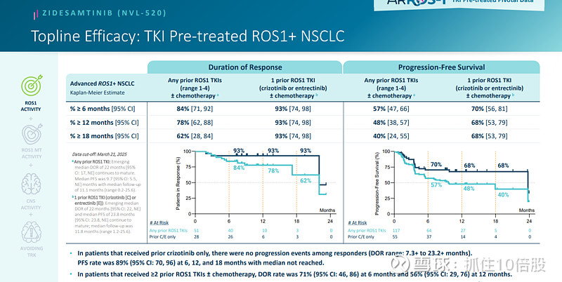 在那些此前接受过≥2 次 ROS1 酪氨酸激酶抑制剂治疗(并辅以化疗)的患者中,6 个月时的疾病缓解率(DOR)为 71%,12 个月时为 56%。